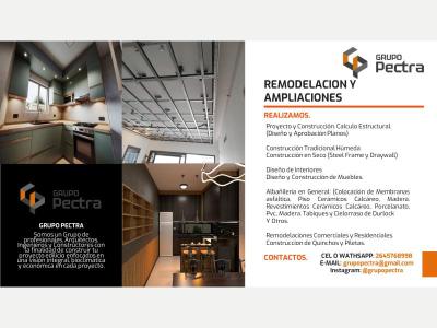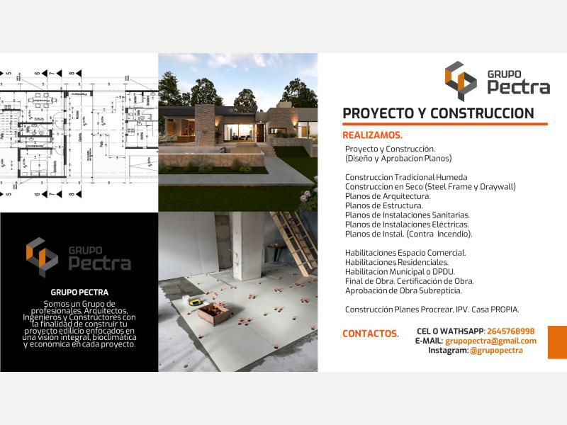 CONSTRUCCION PROYECTO AMPLIACIONES REMODELACIONES Somos un Grupo de profesionales, Arquitectos, Ingenieros y Constructores con la finalidad de construir tu proyecto edilicio enfocados en una visión integral, bioclimática y económica en cada proyecto . CONTACTOS CEL O WATHSAPP: 2645768998 E-MAIL: [email protected]: @grupopectra