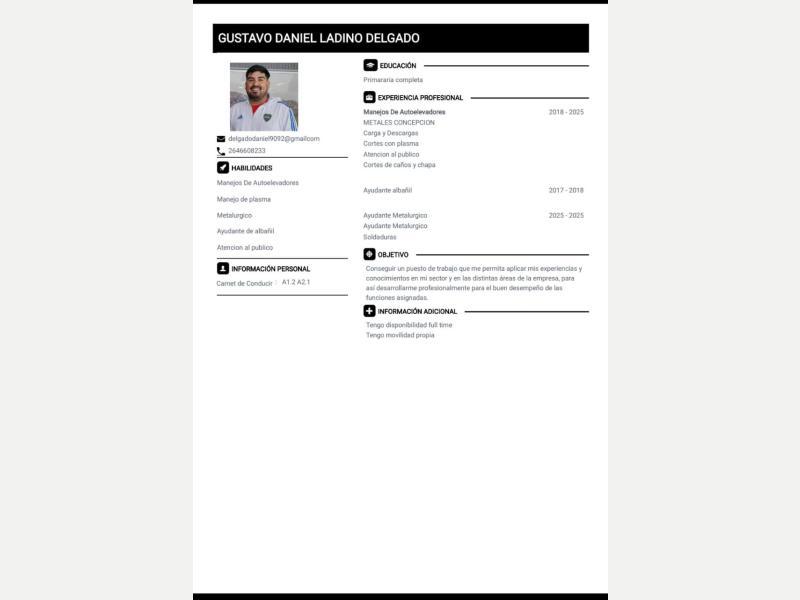 Busco Trabajo con suma urgencia ya que tengo 3 hijos soy ayudante de metalurgico, ayudante de albañil y manejo autoelevadores corto con plamas2646608233