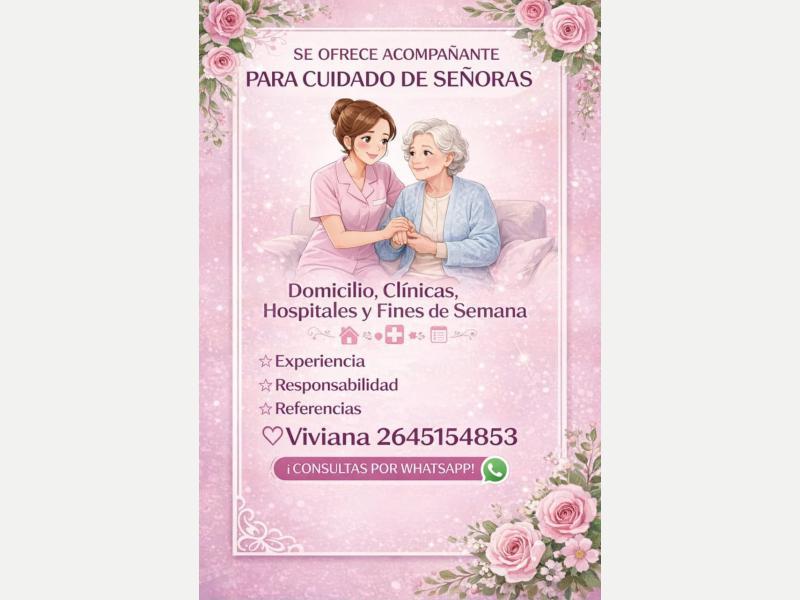 Cuidadora Cuidado de señoras mayores en domicilio, clínicas, hospitales etc.