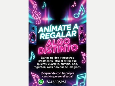 Regala temas Musicales personalizados Creamos tu tema musical en el estilo que desees ideal para radios, televisión, publicidad, marketing o para hacer un regalo distinto su consulta no molesta consulta o pedí muestras totalmente gratis