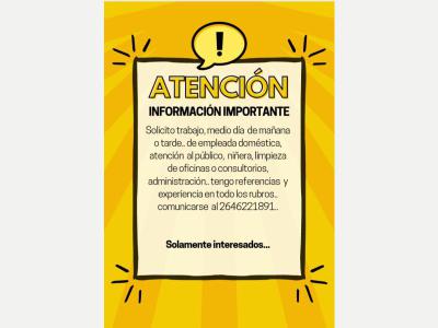 Busco trabajo, medio día o full time, de niñera, empleada doméstica, atención al público en cualquier rubro.. cuidado de persona mayor .. soy muy responsable tengo referencias.. 26462218912646221891