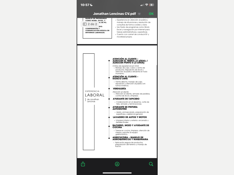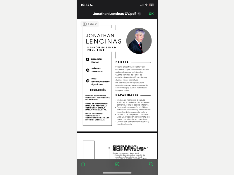 Me nombre es Jonathan, tengo 20 años y ando en busca de trabajo, tengo secundario completo y movilidad propia con carnte B12646620110