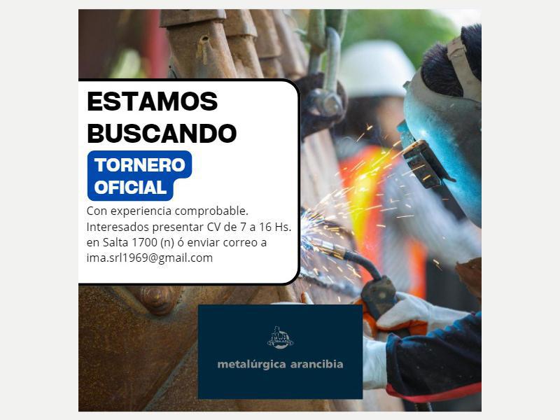 Con experiencia comprobable. Interesados presentar CV de 7 a 16 Hs. en Salta 1700 (n) ó enviar correo a [email protected]- Tornería