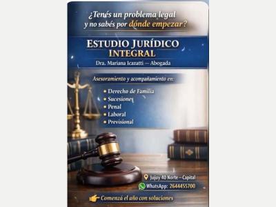 ESTUDIO JURÍDICO INTEGRAL Servicios D. Familia, Sucesiones, Laboral, Previsional, Penal. Posesiones veinteañales, desalojosMediaciones, conciliaciones y flagrancia.